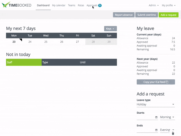 TIMEBOOKED provides a solution to all these problems. With all of your holiday, events, overtime and absences in one easy to use application, it's far simpler for you and your team to manage their time.