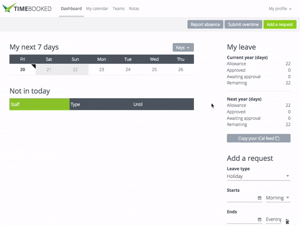 TIMEBOOKED is a simple, effective way to manage your employees. Organise holidays, illness and overtime within one easy to use application.